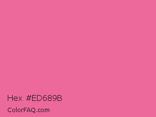Hex #ed689b Color is a light rose color and the nearest color is Cyclamen #f56fa1. Hex code #ed689b and RGB value is rgb(237,104,155). In RGB color space, this color is composed of 93% red, 41% green, 61% blue, In CMYK color space, this color is composed of 0% cyan, 56% magenta, 35% yellow , 7% black , In HSL color space, this color has a hue angle of 337° , 79% saturation and 67% lightness.