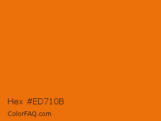 Hex #ed710b Color is a normal orange color and the nearest color is Christine #e7730a. Hex code #ed710b and RGB value is rgb(237,113,11). In RGB color space, this color is composed of 93% red, 44% green, 4% blue, In CMYK color space, this color is composed of 0% cyan, 52% magenta, 95% yellow , 7% black , In HSL color space, this color has a hue angle of 27° , 91% saturation and 49% lightness.