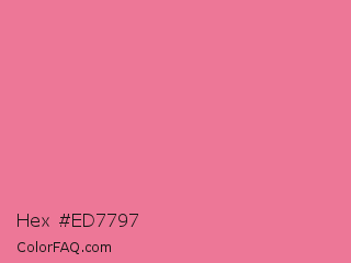 Hex #ed7797 Color is a light rose color and the nearest color is Bright Blush #e47698. Hex code #ed7797 and RGB value is rgb(237,119,151). In RGB color space, this color is composed of 93% red, 47% green, 59% blue, In CMYK color space, this color is composed of 0% cyan, 50% magenta, 36% yellow , 7% black , In HSL color space, this color has a hue angle of 344° , 77% saturation and 70% lightness.