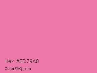 Hex #ed79a8 Color is a light rose color and the nearest color is Cyclamen #f56fa1. Hex code #ed79a8 and RGB value is rgb(237,121,168). In RGB color space, this color is composed of 93% red, 47% green, 66% blue, In CMYK color space, this color is composed of 0% cyan, 49% magenta, 29% yellow , 7% black , In HSL color space, this color has a hue angle of 336° , 76% saturation and 70% lightness.