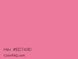 Hex #ed7a9d Color is a light rose color and the nearest color is Bright Blush #e47698. Hex code #ed7a9d and RGB value is rgb(237,122,157). In RGB color space, this color is composed of 93% red, 48% green, 62% blue, In CMYK color space, this color is composed of 0% cyan, 49% magenta, 34% yellow , 7% black , In HSL color space, this color has a hue angle of 342° , 76% saturation and 70% lightness.