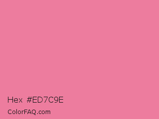 Hex #ed7c9e Color is a light rose color and the nearest color is Bright Blush #e47698. Hex code #ed7c9e and RGB value is rgb(237,124,158). In RGB color space, this color is composed of 93% red, 49% green, 62% blue, In CMYK color space, this color is composed of 0% cyan, 48% magenta, 33% yellow , 7% black , In HSL color space, this color has a hue angle of 342° , 76% saturation and 71% lightness.