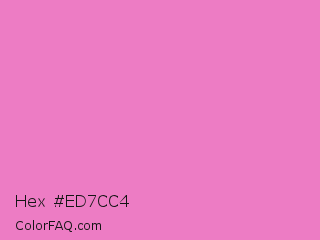 Hex #ed7cc4 Color is a light magenta color and the nearest color is Persian Pink #f77fbe. Hex code #ed7cc4 and RGB value is rgb(237,124,196). In RGB color space, this color is composed of 93% red, 49% green, 77% blue, In CMYK color space, this color is composed of 0% cyan, 48% magenta, 17% yellow , 7% black , In HSL color space, this color has a hue angle of 322° , 76% saturation and 71% lightness.