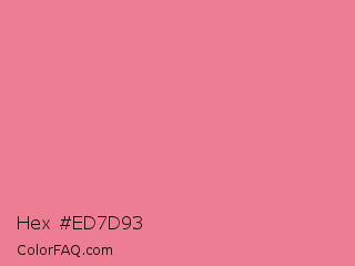 Hex #ed7d93 Color is a light red color and the nearest color is Bright Blush #e47698. Hex code #ed7d93 and RGB value is rgb(237,125,147). In RGB color space, this color is composed of 93% red, 49% green, 58% blue, In CMYK color space, this color is composed of 0% cyan, 47% magenta, 38% yellow , 7% black , In HSL color space, this color has a hue angle of 348° , 76% saturation and 71% lightness.
