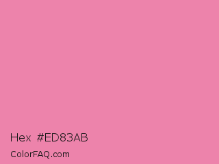 Hex #ed83ab Color is a light rose color and the nearest color is Carissma #ea88a8. Hex code #ed83ab and RGB value is rgb(237,131,171). In RGB color space, this color is composed of 93% red, 51% green, 67% blue, In CMYK color space, this color is composed of 0% cyan, 45% magenta, 28% yellow , 7% black , In HSL color space, this color has a hue angle of 337° , 75% saturation and 72% lightness.