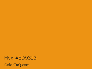 Hex #ed9313 Color is a normal orange color and the nearest color is Dixie #e29418. Hex code #ed9313 and RGB value is rgb(237,147,19). In RGB color space, this color is composed of 93% red, 58% green, 7% blue, In CMYK color space, this color is composed of 0% cyan, 38% magenta, 92% yellow , 7% black , In HSL color space, this color has a hue angle of 35° , 86% saturation and 50% lightness.