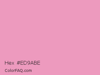 Hex #ed9abe Color is a light rose color and the nearest color is Amaranth Pink #f19cbb. Hex code #ed9abe and RGB value is rgb(237,154,190). In RGB color space, this color is composed of 93% red, 60% green, 75% blue, In CMYK color space, this color is composed of 0% cyan, 35% magenta, 20% yellow , 7% black , In HSL color space, this color has a hue angle of 334° , 70% saturation and 77% lightness.