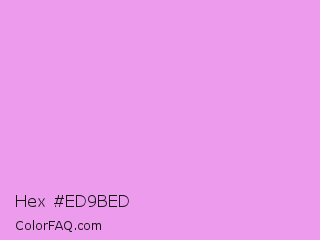 Hex #ed9bed Color is a light magenta color and the nearest color is Lavender Rose #fba0e3. Hex code #ed9bed and RGB value is rgb(237,155,237). In RGB color space, this color is composed of 93% red, 61% green, 93% blue, In CMYK color space, this color is composed of 0% cyan, 35% magenta, 0% yellow , 7% black , In HSL color space, this color has a hue angle of 300° , 69% saturation and 77% lightness.