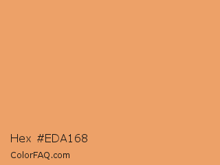 Hex #eda168 Color is a light orange color and the nearest color is Sandy Brown #f4a460. Hex code #eda168 and RGB value is rgb(237,161,104). In RGB color space, this color is composed of 93% red, 63% green, 41% blue, In CMYK color space, this color is composed of 0% cyan, 32% magenta, 56% yellow , 7% black , In HSL color space, this color has a hue angle of 26° , 79% saturation and 67% lightness.