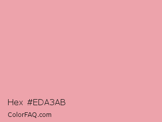 Hex #eda3ab Color is a light red color and the nearest color is Wewak #f19bab. Hex code #eda3ab and RGB value is rgb(237,163,171). In RGB color space, this color is composed of 93% red, 64% green, 67% blue, In CMYK color space, this color is composed of 0% cyan, 31% magenta, 28% yellow , 7% black , In HSL color space, this color has a hue angle of 354° , 67% saturation and 78% lightness.