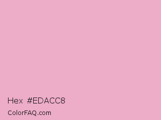 Hex #edacc8 Color is a light rose color and the nearest color is Pink Pearl #e7accf. Hex code #edacc8 and RGB value is rgb(237,172,200). In RGB color space, this color is composed of 93% red, 67% green, 78% blue, In CMYK color space, this color is composed of 0% cyan, 27% magenta, 16% yellow , 7% black , In HSL color space, this color has a hue angle of 334° , 64% saturation and 80% lightness.