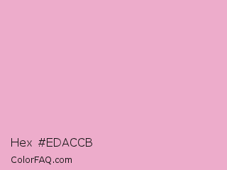 Hex #edaccb Color is a light rose color and the nearest color is Pink Pearl #e7accf. Hex code #edaccb and RGB value is rgb(237,172,203). In RGB color space, this color is composed of 93% red, 67% green, 80% blue, In CMYK color space, this color is composed of 0% cyan, 27% magenta, 14% yellow , 7% black , In HSL color space, this color has a hue angle of 331° , 64% saturation and 80% lightness.