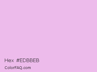 Hex #edbbeb Color is a very light magenta color and the nearest color is French Lilac #ecc7ee. Hex code #edbbeb and RGB value is rgb(237,187,235). In RGB color space, this color is composed of 93% red, 73% green, 92% blue, In CMYK color space, this color is composed of 0% cyan, 21% magenta, 1% yellow , 7% black , In HSL color space, this color has a hue angle of 302° , 58% saturation and 83% lightness.