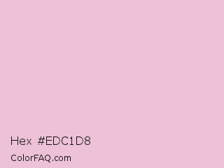 Hex #edc1d8 Color is a very light rose color and the nearest color is Melanie #e4c2d5. Hex code #edc1d8 and RGB value is rgb(237,193,216). In RGB color space, this color is composed of 93% red, 76% green, 85% blue, In CMYK color space, this color is composed of 0% cyan, 19% magenta, 9% yellow , 7% black , In HSL color space, this color has a hue angle of 329° , 55% saturation and 84% lightness.