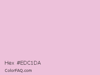 Hex #edc1da Color is a very light magenta color and the nearest color is Melanie #e4c2d5. Hex code #edc1da and RGB value is rgb(237,193,218). In RGB color space, this color is composed of 93% red, 76% green, 85% blue, In CMYK color space, this color is composed of 0% cyan, 19% magenta, 8% yellow , 7% black , In HSL color space, this color has a hue angle of 326° , 55% saturation and 84% lightness.