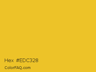 Hex #edc328 Color is a normal yellow color and the nearest color is Saffron #f4c430. Hex code #edc328 and RGB value is rgb(237,195,40). In RGB color space, this color is composed of 93% red, 76% green, 16% blue, In CMYK color space, this color is composed of 0% cyan, 18% magenta, 83% yellow , 7% black , In HSL color space, this color has a hue angle of 47° , 85% saturation and 54% lightness.