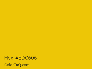 Hex #edc606 Color is a normal yellow color and the nearest color is Yellow Munsell #efcc00. Hex code #edc606 and RGB value is rgb(237,198,6). In RGB color space, this color is composed of 93% red, 78% green, 2% blue, In CMYK color space, this color is composed of 0% cyan, 16% magenta, 97% yellow , 7% black , In HSL color space, this color has a hue angle of 50° , 95% saturation and 48% lightness.