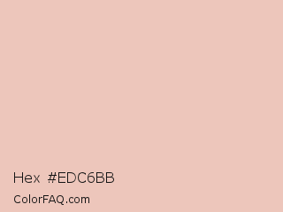 Hex #edc6bb Color is a very light red color and the nearest color is Beauty Bush #eec1be. Hex code #edc6bb and RGB value is rgb(237,198,187). In RGB color space, this color is composed of 93% red, 78% green, 73% blue, In CMYK color space, this color is composed of 0% cyan, 16% magenta, 21% yellow , 7% black , In HSL color space, this color has a hue angle of 13° , 58% saturation and 83% lightness.
