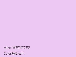 Hex #edc7f2 Color is a very light magenta color and the nearest color is French Lilac #ecc7ee. Hex code #edc7f2 and RGB value is rgb(237,199,242). In RGB color space, this color is composed of 93% red, 78% green, 95% blue, In CMYK color space, this color is composed of 2% cyan, 18% magenta, 0% yellow , 5% black , In HSL color space, this color has a hue angle of 293° , 62% saturation and 86% lightness.