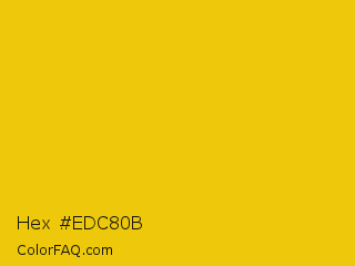 Hex #edc80b Color is a normal yellow color and the nearest color is Yellow Munsell #efcc00. Hex code #edc80b and RGB value is rgb(237,200,11). In RGB color space, this color is composed of 93% red, 78% green, 4% blue, In CMYK color space, this color is composed of 0% cyan, 16% magenta, 95% yellow , 7% black , In HSL color space, this color has a hue angle of 50° , 91% saturation and 49% lightness.
