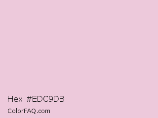 Hex #edc9db Color is a very light rose color and the nearest color is Queen Pink #e8ccd7. Hex code #edc9db and RGB value is rgb(237,201,219). In RGB color space, this color is composed of 93% red, 79% green, 86% blue, In CMYK color space, this color is composed of 0% cyan, 15% magenta, 8% yellow , 7% black , In HSL color space, this color has a hue angle of 330° , 50% saturation and 86% lightness.