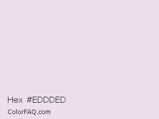 Hex #eddded Color is a very light magenta color and the nearest color is Prim #f0e2ec. Hex code #eddded and RGB value is rgb(237,221,237). In RGB color space, this color is composed of 93% red, 87% green, 93% blue, In CMYK color space, this color is composed of 0% cyan, 7% magenta, 0% yellow , 7% black , In HSL color space, this color has a hue angle of 300° , 31% saturation and 90% lightness.