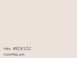 Hex #ede1dc Color is a very light orange color and the nearest color is Bizarre #eededa. Hex code #ede1dc and RGB value is rgb(237,225,220). In RGB color space, this color is composed of 93% red, 88% green, 86% blue, In CMYK color space, this color is composed of 0% cyan, 5% magenta, 7% yellow , 7% black , In HSL color space, this color has a hue angle of 18° , 32% saturation and 90% lightness.