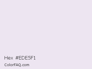 Hex #ede5f1 Color is a very light purple color and the nearest color is Prim #f0e2ec. Hex code #ede5f1 and RGB value is rgb(237,229,241). In RGB color space, this color is composed of 93% red, 90% green, 95% blue, In CMYK color space, this color is composed of 2% cyan, 5% magenta, 0% yellow , 5% black , In HSL color space, this color has a hue angle of 280° , 30% saturation and 92% lightness.