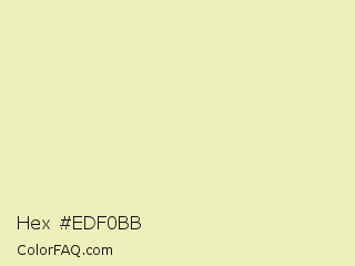 Hex #edf0bb Color is a very light yellow color and the nearest color is Fall Green #ecebbd. Hex code #edf0bb and RGB value is rgb(237,240,187). In RGB color space, this color is composed of 93% red, 94% green, 73% blue, In CMYK color space, this color is composed of 1% cyan, 0% magenta, 22% yellow , 6% black , In HSL color space, this color has a hue angle of 63° , 64% saturation and 84% lightness.