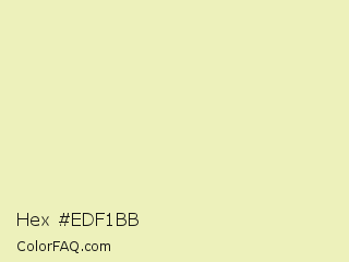 Hex #edf1bb Color is a very light yellow color and the nearest color is Fall Green #ecebbd. Hex code #edf1bb and RGB value is rgb(237,241,187). In RGB color space, this color is composed of 93% red, 95% green, 73% blue, In CMYK color space, this color is composed of 2% cyan, 0% magenta, 22% yellow , 5% black , In HSL color space, this color has a hue angle of 64° , 66% saturation and 84% lightness.
