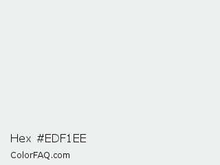 Hex #edf1ee Color is a very light green color and the nearest color is Gallery #efefef. Hex code #edf1ee and RGB value is rgb(237,241,238). In RGB color space, this color is composed of 93% red, 95% green, 93% blue, In CMYK color space, this color is composed of 2% cyan, 0% magenta, 1% yellow , 5% black , In HSL color space, this color has a hue angle of 135° , 13% saturation and 94% lightness.