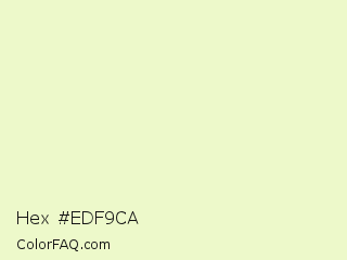 Hex #edf9ca Color is a very light lime color and the nearest color is Chiffon #f1ffc8. Hex code #edf9ca and RGB value is rgb(237,249,202). In RGB color space, this color is composed of 93% red, 98% green, 79% blue, In CMYK color space, this color is composed of 5% cyan, 0% magenta, 19% yellow , 2% black , In HSL color space, this color has a hue angle of 75° , 80% saturation and 88% lightness.