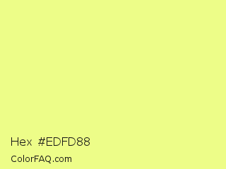 Hex #edfd88 Color is a light yellow color and the nearest color is Honeysuckle #edfc84. Hex code #edfd88 and RGB value is rgb(237,253,136). In RGB color space, this color is composed of 93% red, 99% green, 53% blue, In CMYK color space, this color is composed of 6% cyan, 0% magenta, 46% yellow , 1% black , In HSL color space, this color has a hue angle of 68° , 97% saturation and 76% lightness.