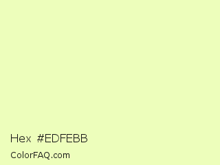 Hex #edfebb Color is a very light lime color and the nearest color is Australian Mint #f5ffbe. Hex code #edfebb and RGB value is rgb(237,254,187). In RGB color space, this color is composed of 93% red, 100% green, 73% blue, In CMYK color space, this color is composed of 7% cyan, 0% magenta, 26% yellow , 0% black , In HSL color space, this color has a hue angle of 75° , 97% saturation and 86% lightness.
