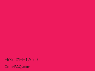 Hex #ee1a5d Color is a normal rose color and the nearest color is Ruby #e0115f. Hex code #ee1a5d and RGB value is rgb(238,26,93). In RGB color space, this color is composed of 93% red, 10% green, 36% blue, In CMYK color space, this color is composed of 0% cyan, 89% magenta, 61% yellow , 7% black , In HSL color space, this color has a hue angle of 341° , 86% saturation and 52% lightness.