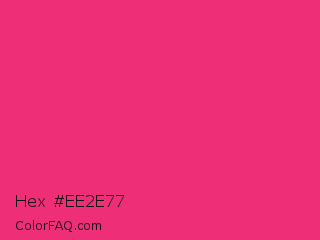 Hex #ee2e77 Color is a normal rose color and the nearest color is Cerise Pink #ec3b83. Hex code #ee2e77 and RGB value is rgb(238,46,119). In RGB color space, this color is composed of 93% red, 18% green, 47% blue, In CMYK color space, this color is composed of 0% cyan, 81% magenta, 50% yellow , 7% black , In HSL color space, this color has a hue angle of 337° , 85% saturation and 56% lightness.