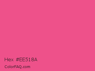 Hex #ee518a Color is a light rose color and the nearest color is French Rose #f64a8a. Hex code #ee518a and RGB value is rgb(238,81,138). In RGB color space, this color is composed of 93% red, 32% green, 54% blue, In CMYK color space, this color is composed of 0% cyan, 66% magenta, 42% yellow , 7% black , In HSL color space, this color has a hue angle of 338° , 82% saturation and 63% lightness.