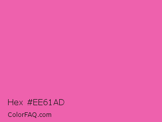 Hex #ee61ad Color is a light rose color and the nearest color is Brilliant Rose #f653a6. Hex code #ee61ad and RGB value is rgb(238,97,173). In RGB color space, this color is composed of 93% red, 38% green, 68% blue, In CMYK color space, this color is composed of 0% cyan, 59% magenta, 27% yellow , 7% black , In HSL color space, this color has a hue angle of 328° , 81% saturation and 66% lightness.