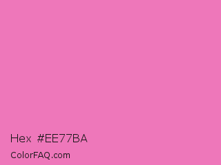 Hex #ee77ba Color is a light magenta color and the nearest color is Persian Pink #f77fbe. Hex code #ee77ba and RGB value is rgb(238,119,186). In RGB color space, this color is composed of 93% red, 47% green, 73% blue, In CMYK color space, this color is composed of 0% cyan, 50% magenta, 22% yellow , 7% black , In HSL color space, this color has a hue angle of 326° , 78% saturation and 70% lightness.