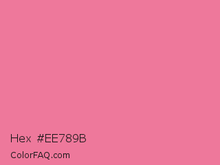 Hex #ee789b Color is a light rose color and the nearest color is Bright Blush #e47698. Hex code #ee789b and RGB value is rgb(238,120,155). In RGB color space, this color is composed of 93% red, 47% green, 61% blue, In CMYK color space, this color is composed of 0% cyan, 50% magenta, 35% yellow , 7% black , In HSL color space, this color has a hue angle of 342° , 78% saturation and 70% lightness.