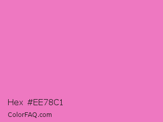 Hex #ee78c1 Color is a light magenta color and the nearest color is Persian Pink #f77fbe. Hex code #ee78c1 and RGB value is rgb(238,120,193). In RGB color space, this color is composed of 93% red, 47% green, 76% blue, In CMYK color space, this color is composed of 0% cyan, 50% magenta, 19% yellow , 7% black , In HSL color space, this color has a hue angle of 323° , 78% saturation and 70% lightness.
