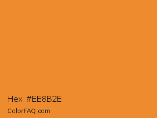 Hex #ee8b2e Color is a normal orange color and the nearest color is Cadmium Orange #ed872d. Hex code #ee8b2e and RGB value is rgb(238,139,46). In RGB color space, this color is composed of 93% red, 55% green, 18% blue, In CMYK color space, this color is composed of 0% cyan, 42% magenta, 81% yellow , 7% black , In HSL color space, this color has a hue angle of 29° , 85% saturation and 56% lightness.