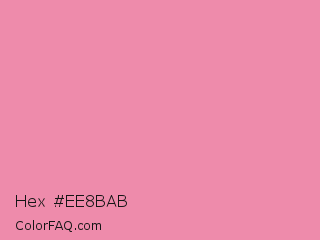 Hex #ee8bab Color is a light rose color and the nearest color is Carissma #ea88a8. Hex code #ee8bab and RGB value is rgb(238,139,171). In RGB color space, this color is composed of 93% red, 55% green, 67% blue, In CMYK color space, this color is composed of 0% cyan, 42% magenta, 28% yellow , 7% black , In HSL color space, this color has a hue angle of 341° , 74% saturation and 74% lightness.