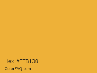 Hex #eeb138 Color is a normal orange color and the nearest color is Tulip Tree #eab33b. Hex code #eeb138 and RGB value is rgb(238,177,56). In RGB color space, this color is composed of 93% red, 69% green, 22% blue, In CMYK color space, this color is composed of 0% cyan, 26% magenta, 76% yellow , 7% black , In HSL color space, this color has a hue angle of 40° , 84% saturation and 58% lightness.