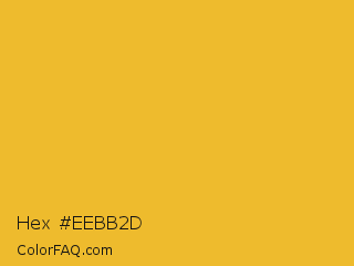 Hex #eebb2d Color is a normal orange color and the nearest color is Saffron #f4c430. Hex code #eebb2d and RGB value is rgb(238,187,45). In RGB color space, this color is composed of 93% red, 73% green, 18% blue, In CMYK color space, this color is composed of 0% cyan, 21% magenta, 81% yellow , 7% black , In HSL color space, this color has a hue angle of 44° , 85% saturation and 55% lightness.