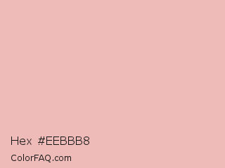 Hex #eebbb8 Color is a very light red color and the nearest color is Shilo #e8b9b3. Hex code #eebbb8 and RGB value is rgb(238,187,184). In RGB color space, this color is composed of 93% red, 73% green, 72% blue, In CMYK color space, this color is composed of 0% cyan, 21% magenta, 23% yellow , 7% black , In HSL color space, this color has a hue angle of 3° , 61% saturation and 83% lightness.