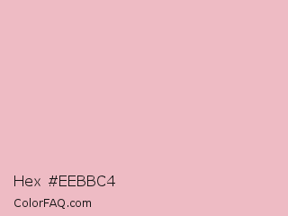 Hex #eebbc4 Color is a very light red color and the nearest color is Cameo Pink #efbbcc. Hex code #eebbc4 and RGB value is rgb(238,187,196). In RGB color space, this color is composed of 93% red, 73% green, 77% blue, In CMYK color space, this color is composed of 0% cyan, 21% magenta, 18% yellow , 7% black , In HSL color space, this color has a hue angle of 349° , 60% saturation and 83% lightness.