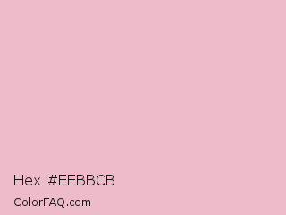 Hex #eebbcb Color is a very light rose color and the nearest color is Cameo Pink #efbbcc. Hex code #eebbcb and RGB value is rgb(238,187,203). In RGB color space, this color is composed of 93% red, 73% green, 80% blue, In CMYK color space, this color is composed of 0% cyan, 21% magenta, 15% yellow , 7% black , In HSL color space, this color has a hue angle of 341° , 60% saturation and 83% lightness.