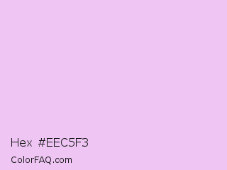 Hex #eec5f3 Color is a very light magenta color and the nearest color is French Lilac #ecc7ee. Hex code #eec5f3 and RGB value is rgb(238,197,243). In RGB color space, this color is composed of 93% red, 77% green, 95% blue, In CMYK color space, this color is composed of 2% cyan, 19% magenta, 0% yellow , 5% black , In HSL color space, this color has a hue angle of 293° , 66% saturation and 86% lightness.