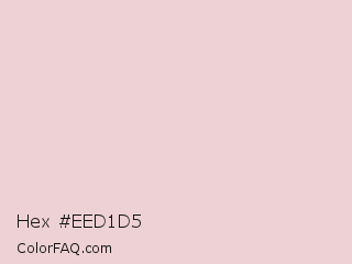 Hex #eed1d5 Color is a very light red color and the nearest color is Queen Pink #e8ccd7. Hex code #eed1d5 and RGB value is rgb(238,209,213). In RGB color space, this color is composed of 93% red, 82% green, 84% blue, In CMYK color space, this color is composed of 0% cyan, 12% magenta, 11% yellow , 7% black , In HSL color space, this color has a hue angle of 352° , 46% saturation and 88% lightness.